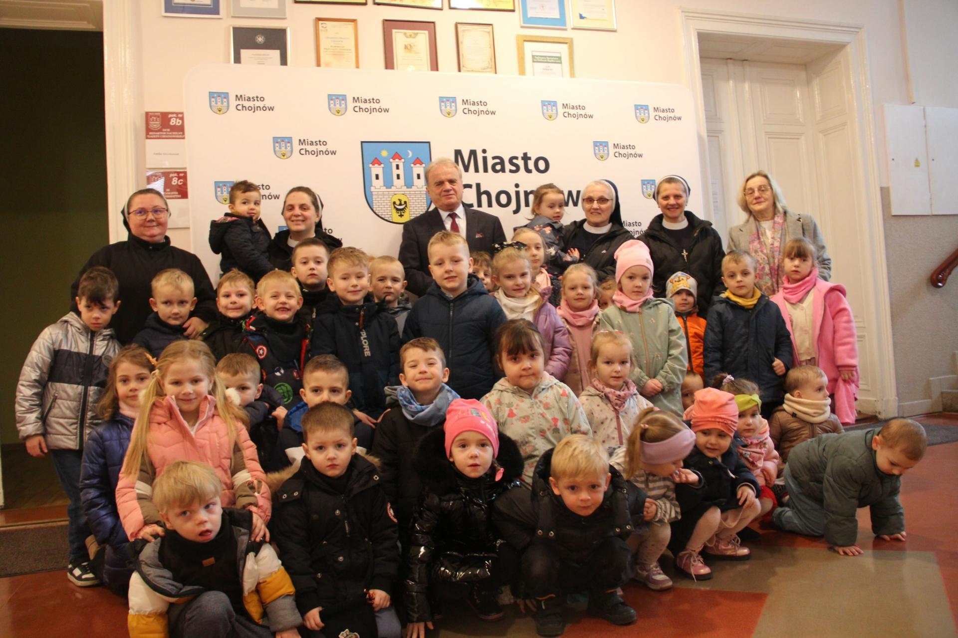Burmistrz Jan Serkies podziękował małym gościom za pamięć i podtrzymywanie tej pięknej, wieloletniej tradycji, która co roku łączy pokolenia chojnowian. Składając życzenia dzieciom i siostrom, przekazał również ciepłe słowa dla wszystkich ich bliskich i rodzin.