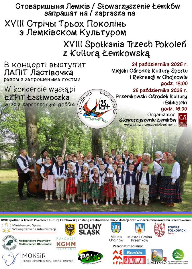 Stowarzyszenie Łemków zaprasza na XVIII Spotkania Trzech Pokoleń z Kulturą Łemkowską – doroczne wydarzenie poświęcone tradycji, muzyce i tożsamości łemkowskiej.