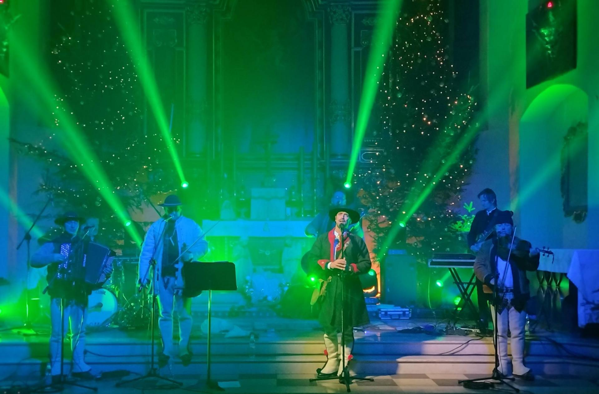 Gwiazdą wieczoru była kapela „Staszek z gór” - grupa muzyków, którzy w swoim DNA mają zapisaną miłość do Podhala i tamtejszego folkloru. Kapela, znana z autentyczności i niespożytej energii, przywiozła ze sobą nie tylko tradycyjne instrumenty, ale przede wszystkim ducha gór. W ich wykonaniu kolędy i pastorałki zyskały nowy, dynamiczny blask. Usłyszeliśmy zarówno radosne, rytmiczne utwory z „przytupem”, jak i nastrojowe pieśni, które w murach naszej fary brzmiały wyjątkowo uroczyście.