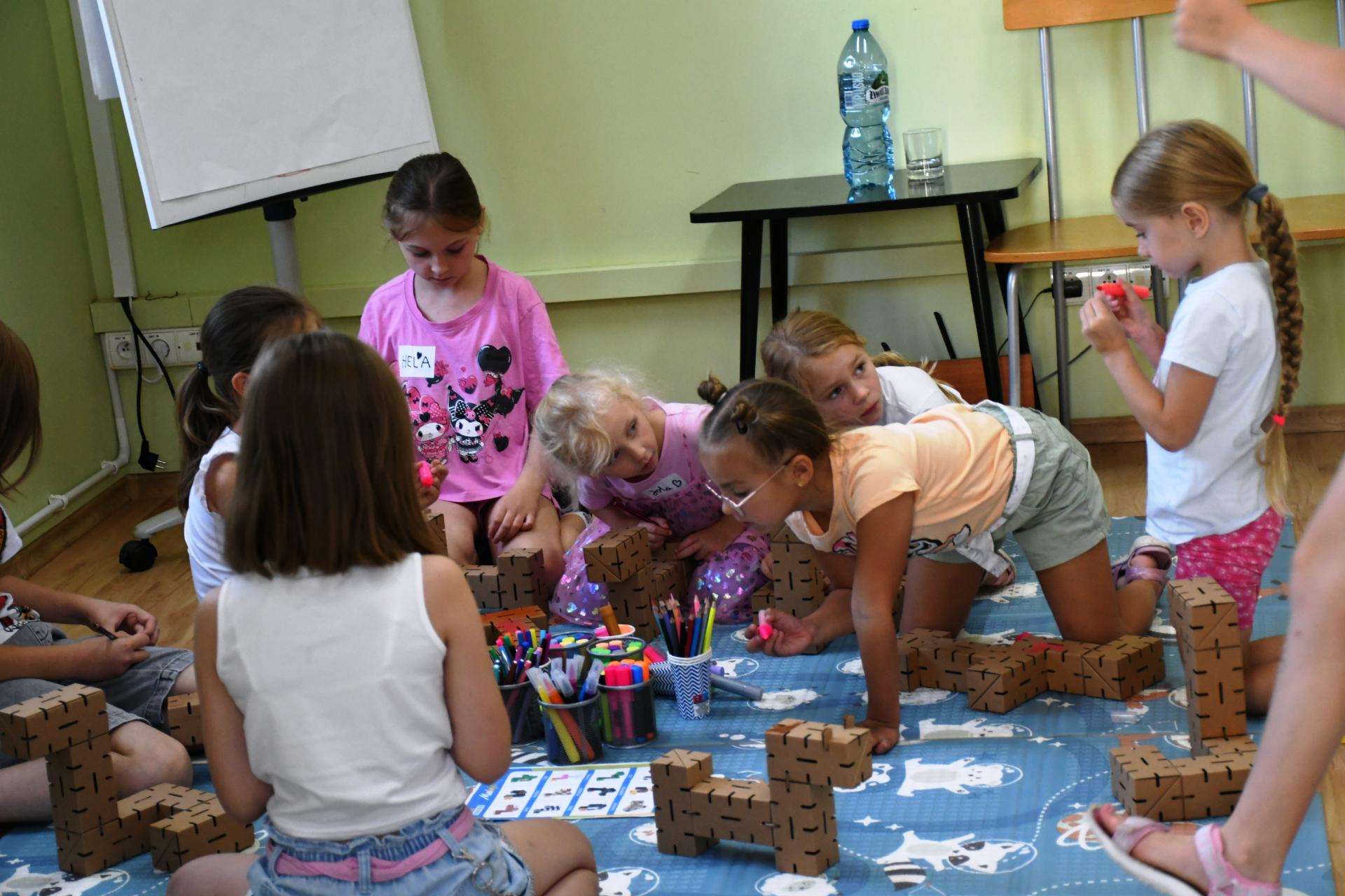Po złożeniu konstrukcji mali uczestnicy mogli je także pomalować, nadając swoim dziełom indywidualny charakter. – „Dzieci bawią się doskonale. Fantastyczna grupa – skupiona, zainteresowana zajęciami, w dodatku kulturalna i bardzo miła. To prawdziwa przyjemność spędzać część wakacji z tak sympatycznymi dziećmi” – mówiła dyrektor biblioteki Lucyna Spes.