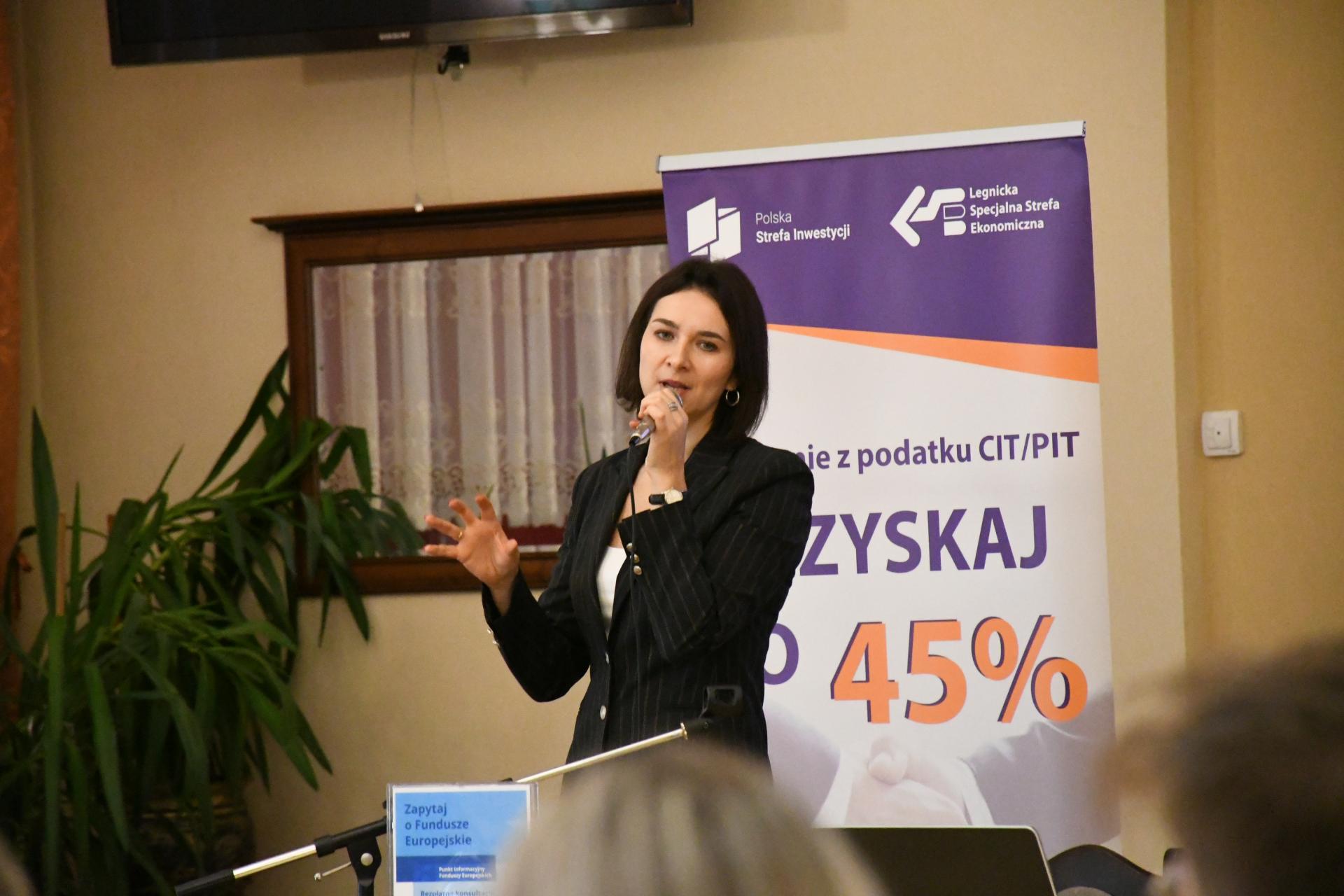 Jednym z kluczowych tematów była strefowa ulga podatkowa CIT/PIT, która umożliwia przedsiębiorcom odliczenie do 45% poniesionych kosztów inwestycyjnych. Co ważne, rozwiązanie to obejmuje cały powiat legnicki, stwarzając realną szansę na szybszy rozwój firm i zwiększenie ich konkurencyjności.
