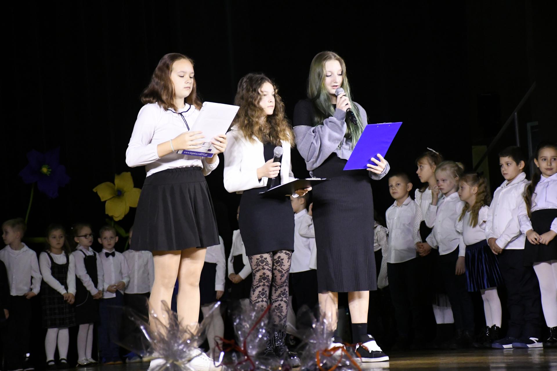 Gratulacje i życzenia złożyli również przewodniczący Rady Rodziców Tomasz Gang oraz przewodniczący Stowarzyszenia Przyjaciół „Trójki” Adam Bielecki. Uroczystość przygotowały wychowawczynie klas pierwszych: Anna Iwanicka, Ewelina Wiśniewska i Małgorzata Uroda-Truskowska. Dyrektor szkoły w szczególny sposób podziękował nauczycielkom za ich zaangażowanie i serce włożone w przygotowanie akademii:
