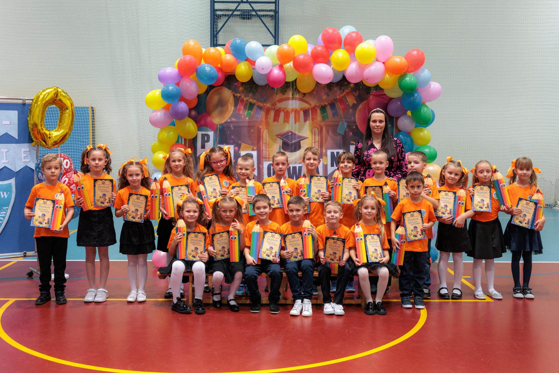Uczniowie zaprezentowali przygotowany z dużym zaangażowaniem program artystyczny, pełen radosnych piosenek i wierszy. Po części artystycznej Dyrektor szkoły Pani Beata Miler – Kornicka wraz z Panią Wicedyrektor Anną Denisiak oraz Burmistrzem Miasta Chojnowa Panem Janem Serkiesem dokonała symbolicznego pasowania wielkim ołówkiem, a każde dziecko otrzymało pamiątkowy dyplom i drobny upominek.