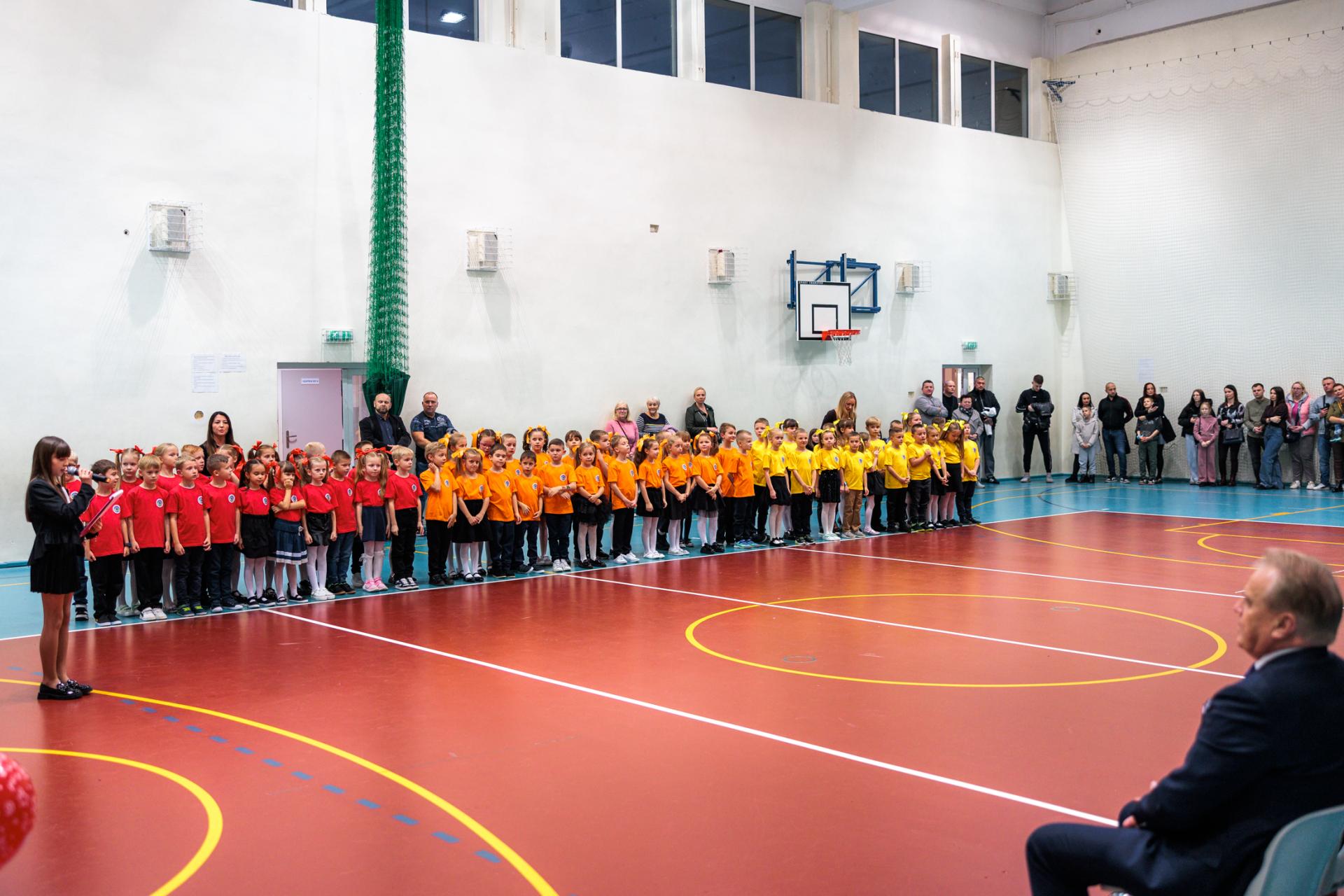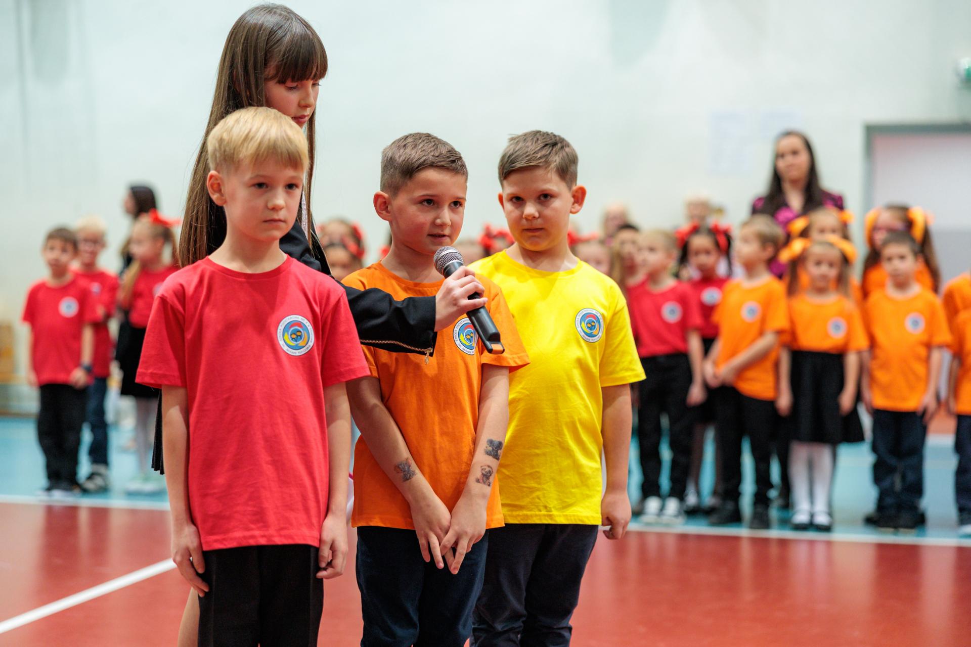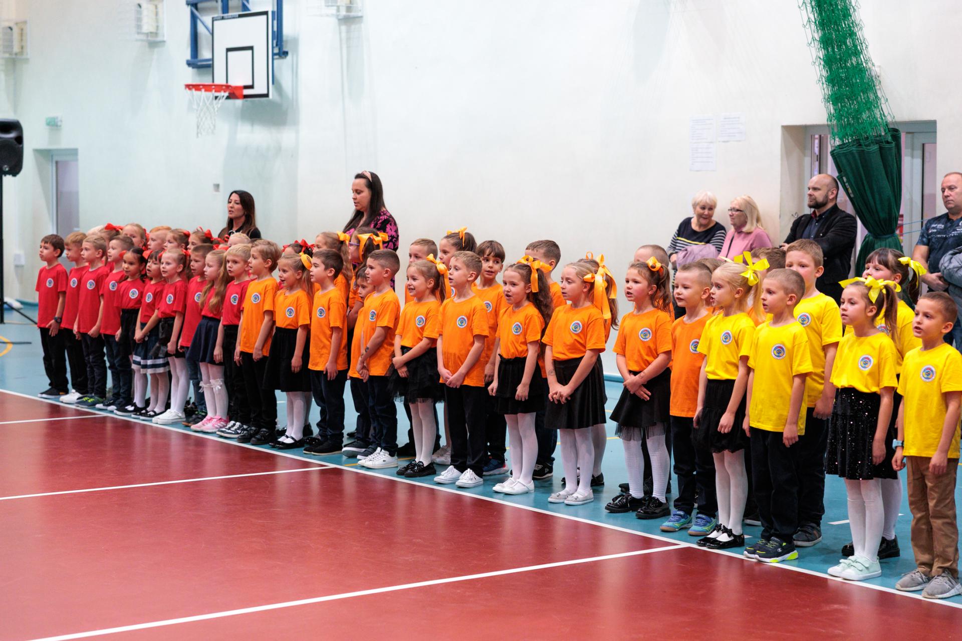 Tegoroczne pasowanie wyróżniało się nie tylko radosną atmosferą, ale i kolorową oprawą. Pierwszoklasiści wystąpili w barwnych koszulkach nawiązujących do strzałek z logo szkoły, symbolizujących różnorodność, współpracę i wspólny rozwój. Kolory te podkreślały, że choć każdy uczeń jest inny, razem tworzą spójną i silną społeczność – tak jak elementy szkolnego emblematu.