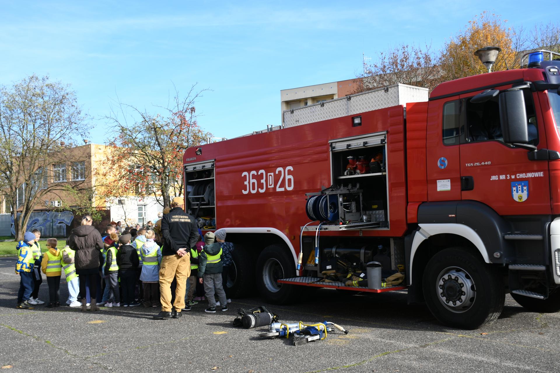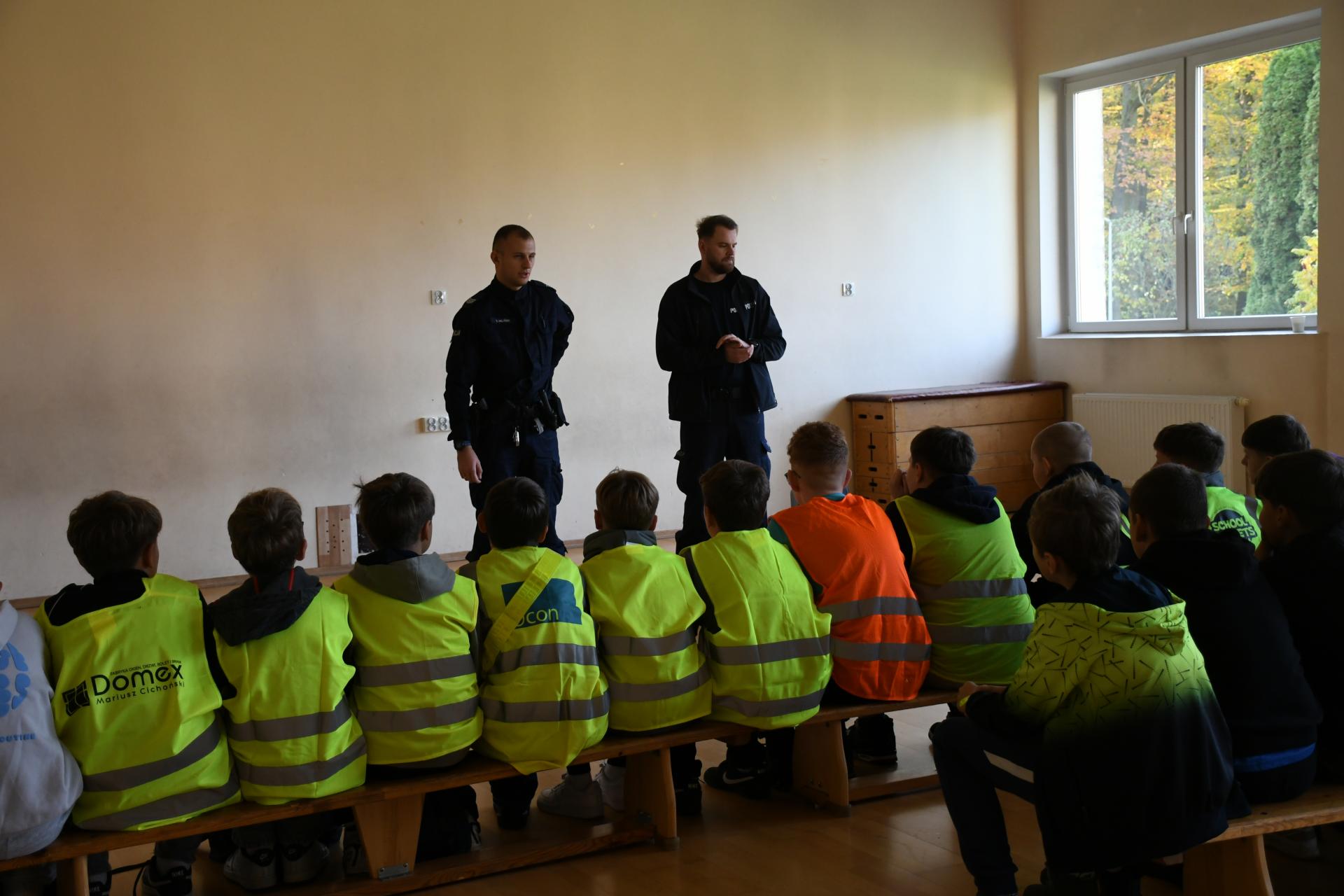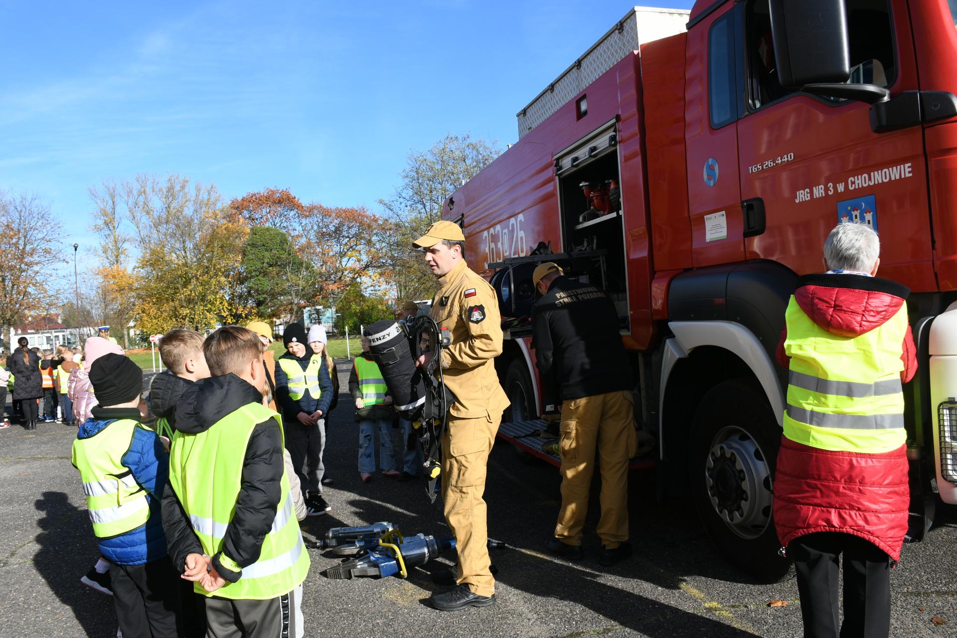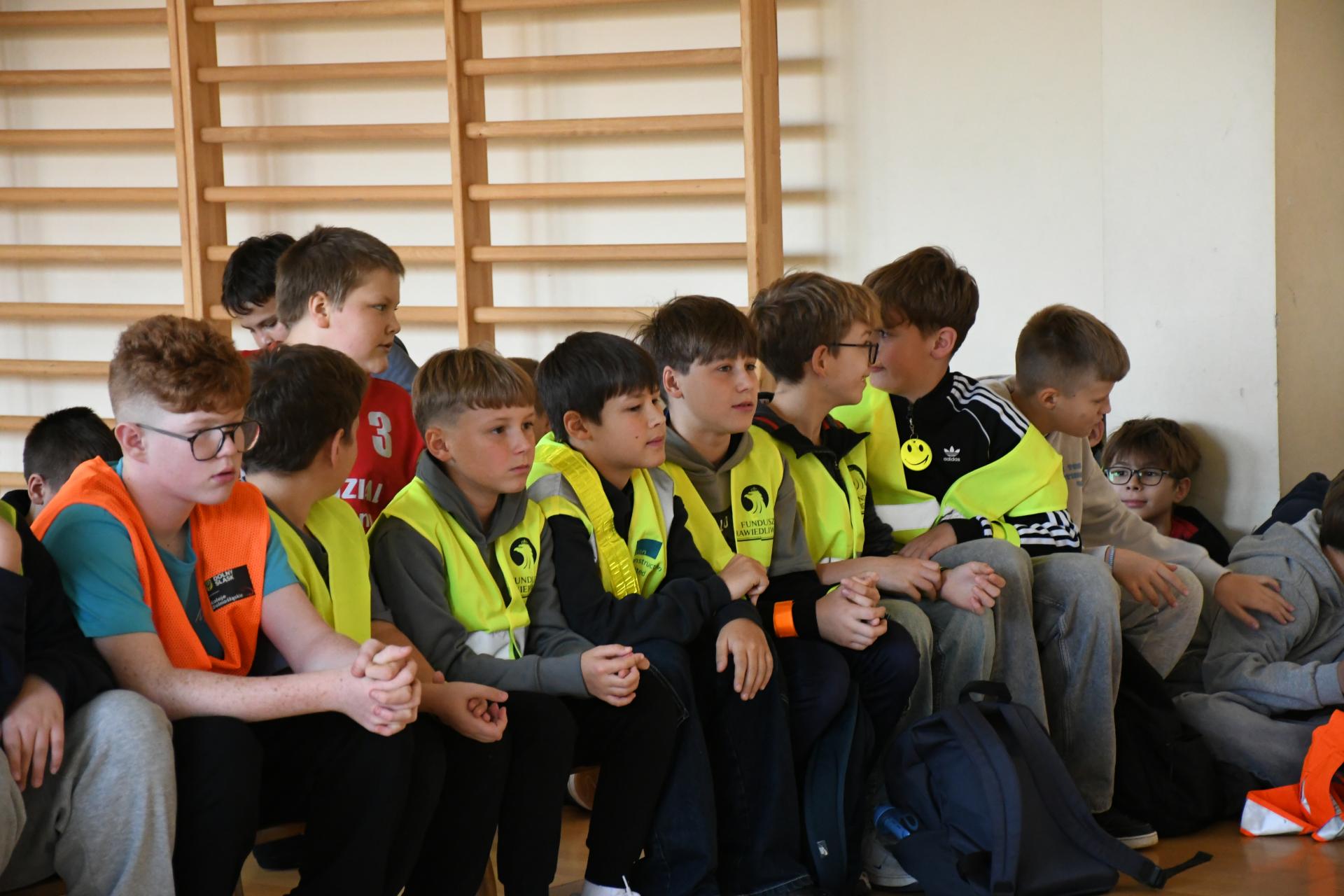 31 października w Szkole Podstawowej nr 4 w Chojnowie odbyły się wyjątkowe lekcje poświęcone bezpieczeństwu w ruchu drogowym. W ramach ogólnopolskiej akcji „Odblaskowa Szkoła” uczniowie klas 1–6 uczestniczyli w zajęciach, pokazach i spotkaniach z przedstawicielami służb mundurowych, które w ciekawy i przystępny sposób przypominały, że odblaski naprawdę ratują życie. Równolegle uczniowie klas 7–8 w budynku szkoły przy ul. Konarskiego także wzięli udział w specjalnych zajęciach poświęconych bezpieczeństwu, promujących noszenie odblasków oraz odpowiedzialne zachowanie w ruchu drogowym. – Zależy nam, by od najmłodszych lat uczyć dzieci, jak dbać o swoje bezpieczeństwo. To nie tylko obowiązek, ale i nasza misja – podkreśla koordynatorka akcji, nauczycielka SP4 Agata Sypień. – Chcemy, by uczniowie rozumieli, jak ważne są odblaski, kaski i światła, gdy poruszają się po drogach – dodaje. Tego dnia w murach szkoły pojawili się zaproszeni goście, którzy na co dzień dbają o bezpieczeństwo mieszkańców. Szczególne podziękowania złożono sierż. sztab. Bartoszowi Kroczakowi, sierż. sztab. Sebastianowi Milińskiemu, st. sierż. Annie Białas, st. asp. Iwonie Danielewicz, a także przedstawicielom Jednostki Ratowniczo-Gaśniczej nr 3 w Chojnowie, Komendy Miejskiej PSP w Legnicy oraz Harcerskiej Grupy Ratowniczej „Ratujmy Razem”.