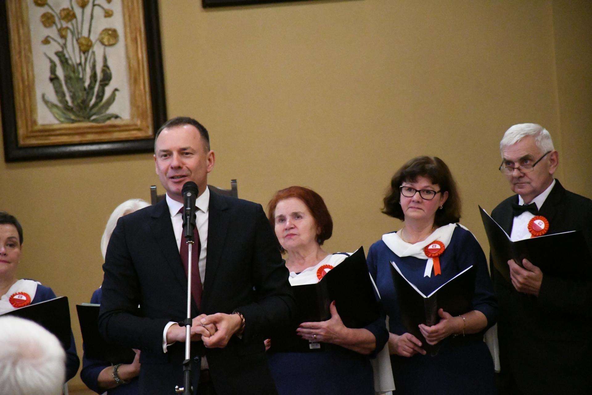 Chór Skoranta zaprezentował zestaw pieśni patriotycznych, które chętnie śpiewali także licznie zgromadzeni w Domu Schrama słuchacze. – Myślę, że każdy poseł powinien przejść test z pieśni patriotycznych – żartował Piotr Borys, sekretarz stanu, który Dzień Niepodległości świętował z mieszkańcami kilku miejscowości, odwiedzając także Chojnów. – Radość, szacunek i wdzięczność wobec tych, którzy walczyli o wolność i suwerenność Polski, to wartości, które dziś nas jednoczą. Życzmy sobie, aby w naszym i kolejnych pokoleniach nie było już takich historycznych wstrząsów. Polska musi być silna – mówił poseł na Sejm.