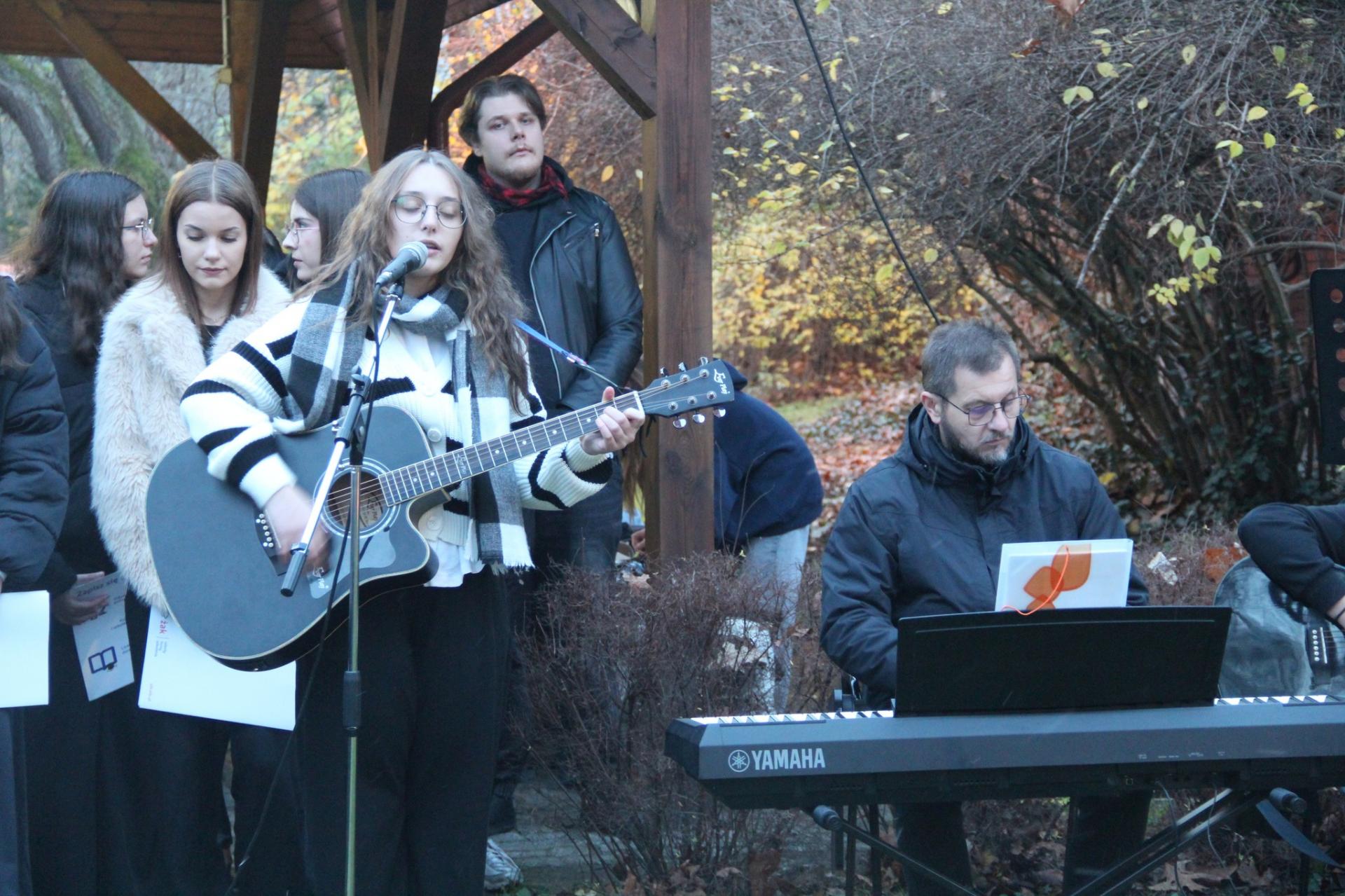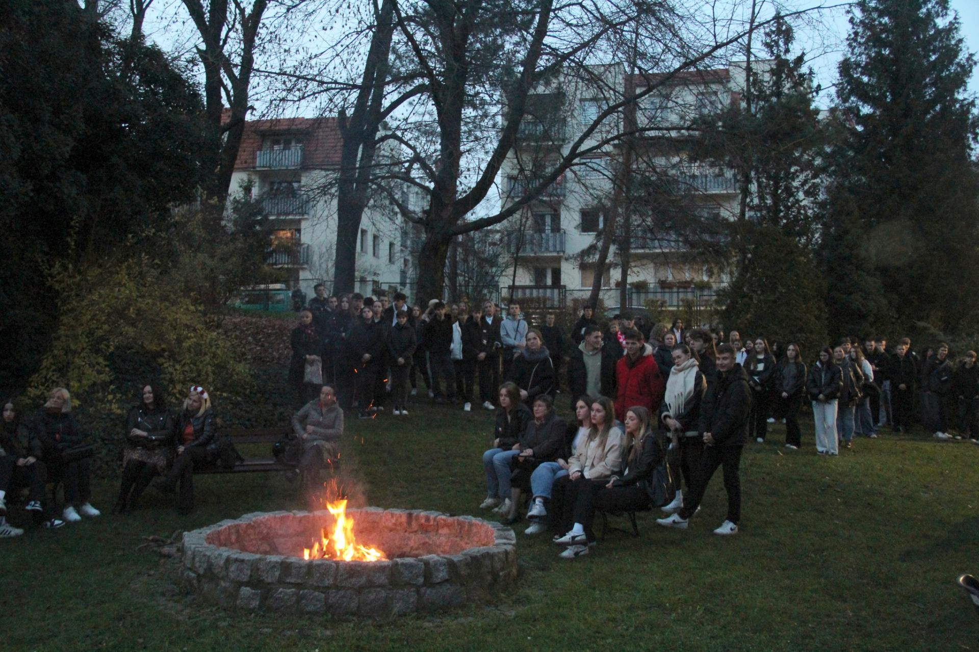 Tradycyjne melodie rozbrzmiewały głośno i dumnie, niosąc się daleko poza szkolne mury. Wspólny śpiew, blask ognia i biało-czerwone barwy stworzyły niepowtarzalny klimat zadumy, wzruszenia, ale też radości z bycia razem.