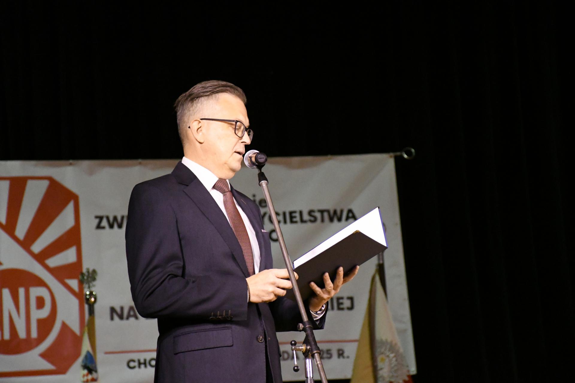 List gratulacyjny przekazał także poseł na Sejm, dr Tadeusz Samborski, który podkreślał, że ZNP to związek, który nie tylko walczył o prawa pracownicze, lecz przede wszystkim dbał o poziom wykształcenia nauczycieli. – Składam wyrazy szacunku i hołd wszystkim osobom zaangażowanym w działalność terenowych oddziałów ZNP. Związek doskonale rozumie swoją rangę i znaczenie w przestrzeni publicznej – zaznaczył. Słowa uznania przekazał również burmistrz Chojnowa, Jan Serkies, dziękując za lata owocnej współpracy, życzliwość oraz wspólne działania na rzecz miejskiej oświaty. Szczególne podziękowania skierował do obecnej prezes oddziału oraz do wieloletniej poprzedniczki, Stanisławy Jańczyn, z którą zrealizowano wiele ważnych inicjatyw.