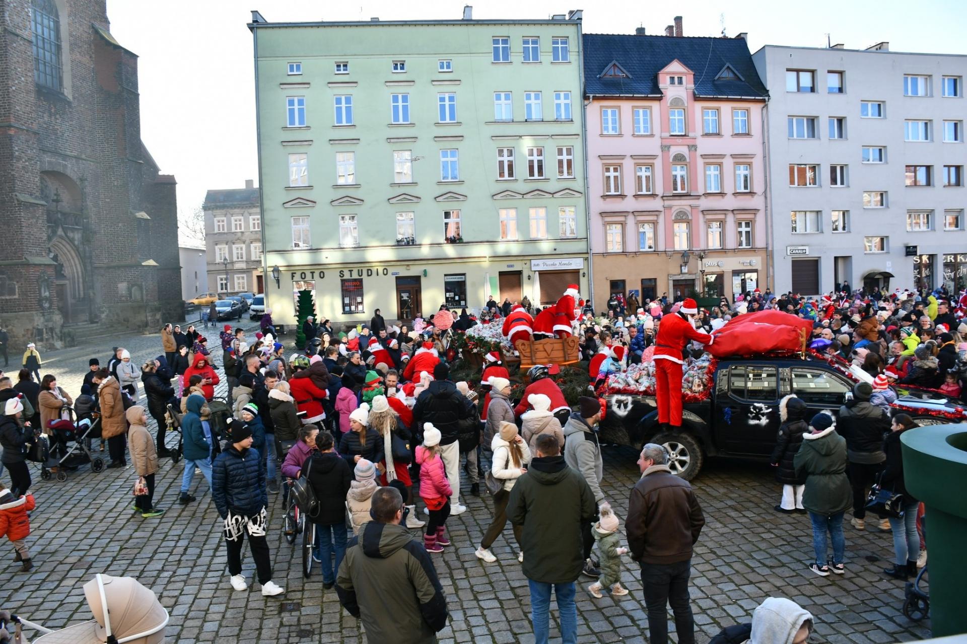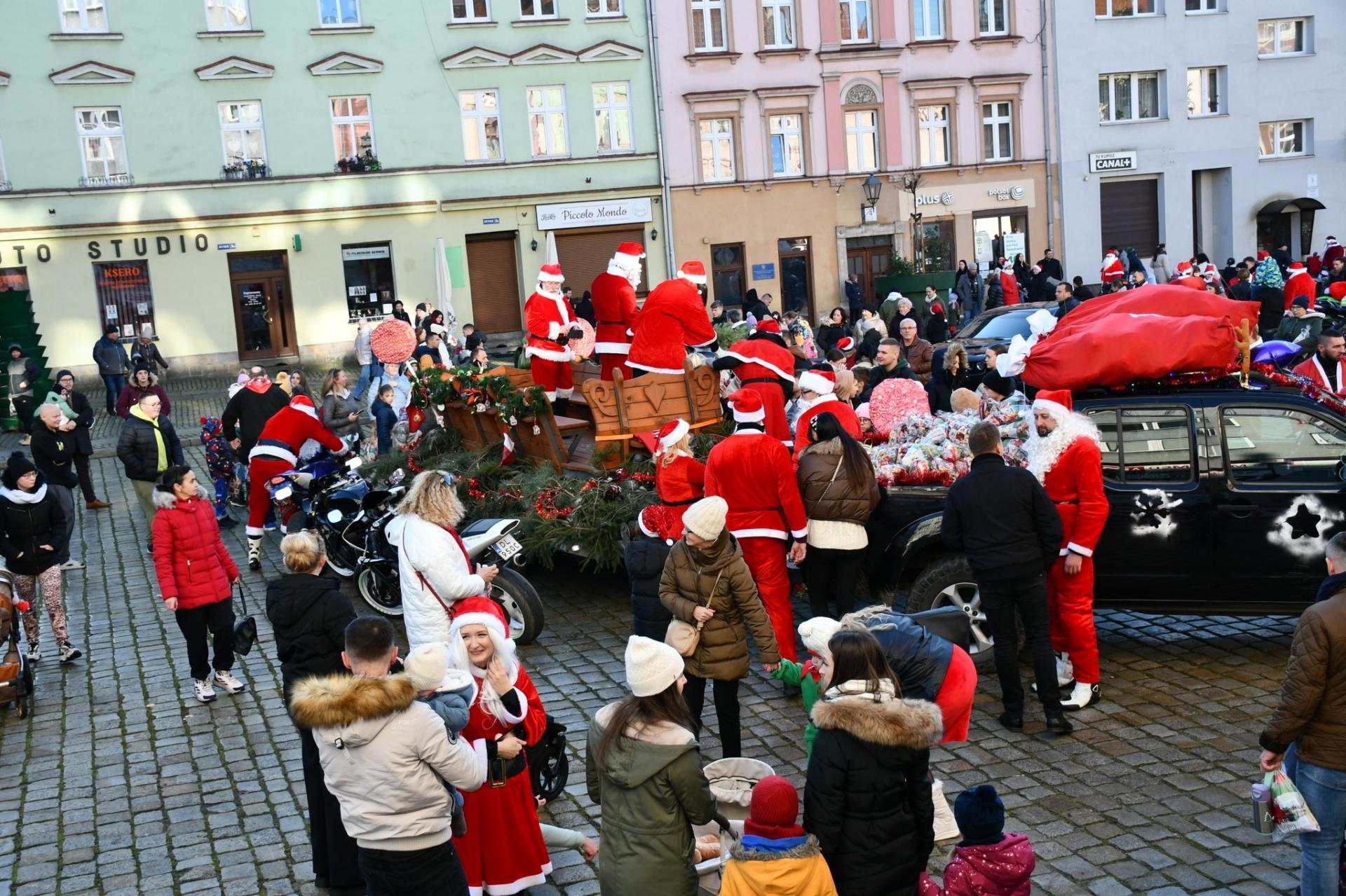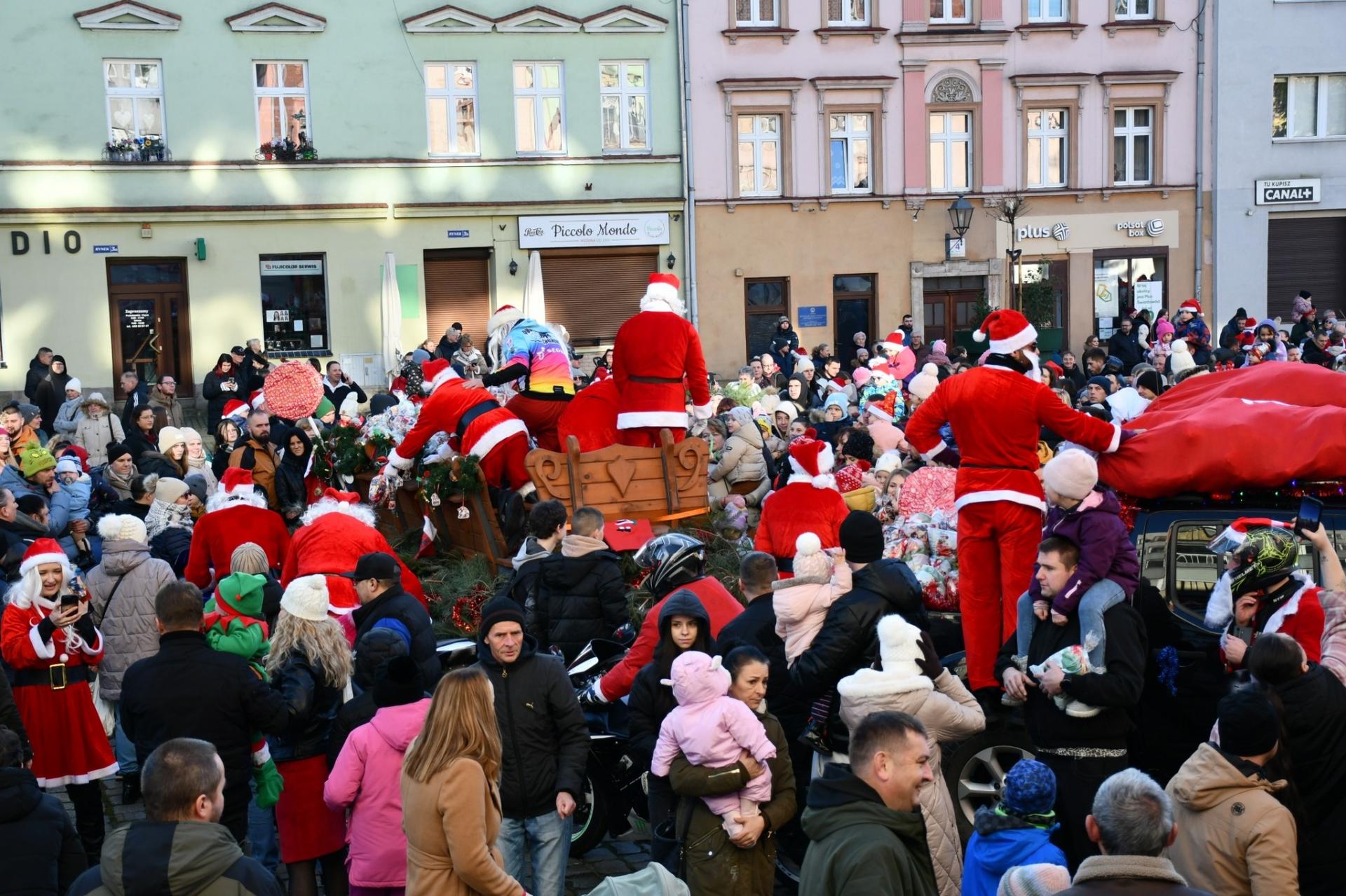 Było tłoczno, wesoło, kolorowo i bardzo głośno. Pogoda dopisała, a Moto Mikołaje nie zawiedli – ich udekorowane motocykle, auta, quady i inne pojazdy oraz pozytywna energia sprawiły, że Rynek zamienił się w jedno wielkie świąteczne święto. Dzieci machały, przybijały piątki, odbierały paczki, a rodzice robili pamiątkowe zdjęcia, próbując zatrzymać te chwile na dłużej.