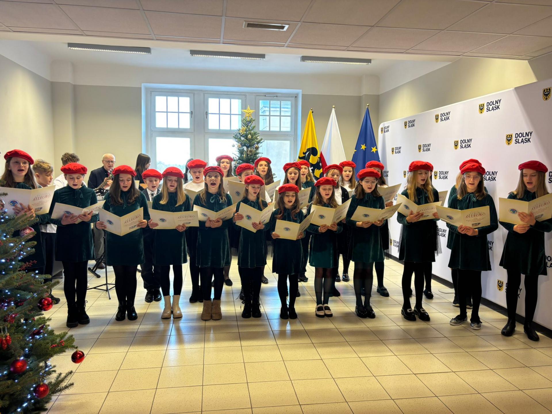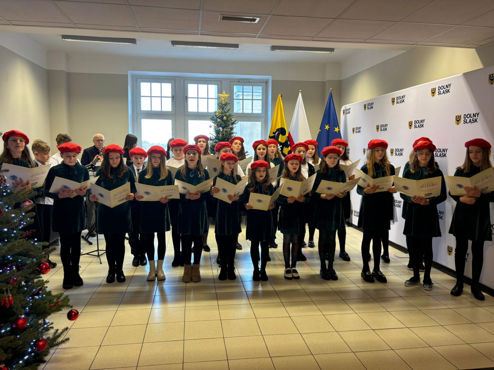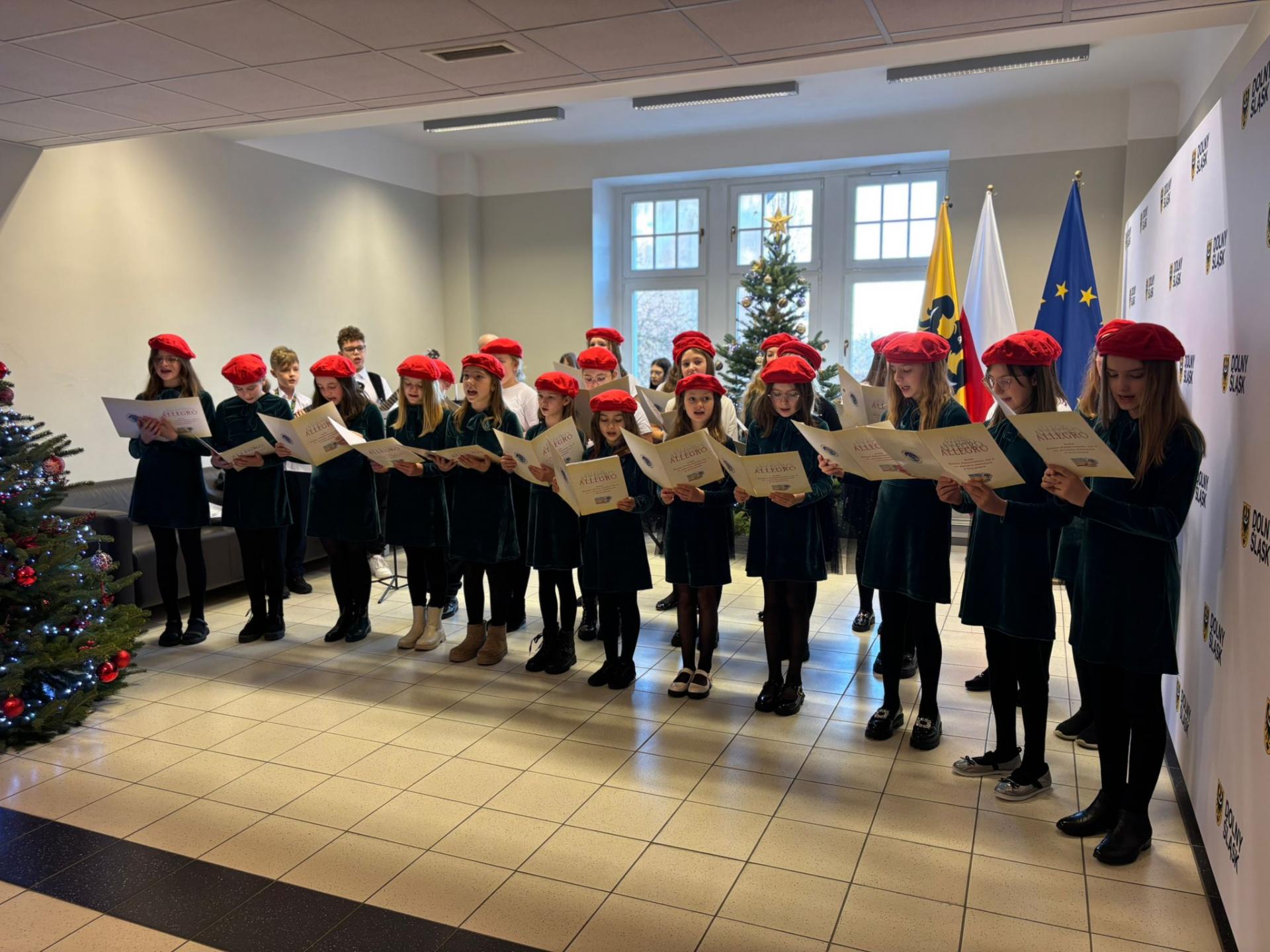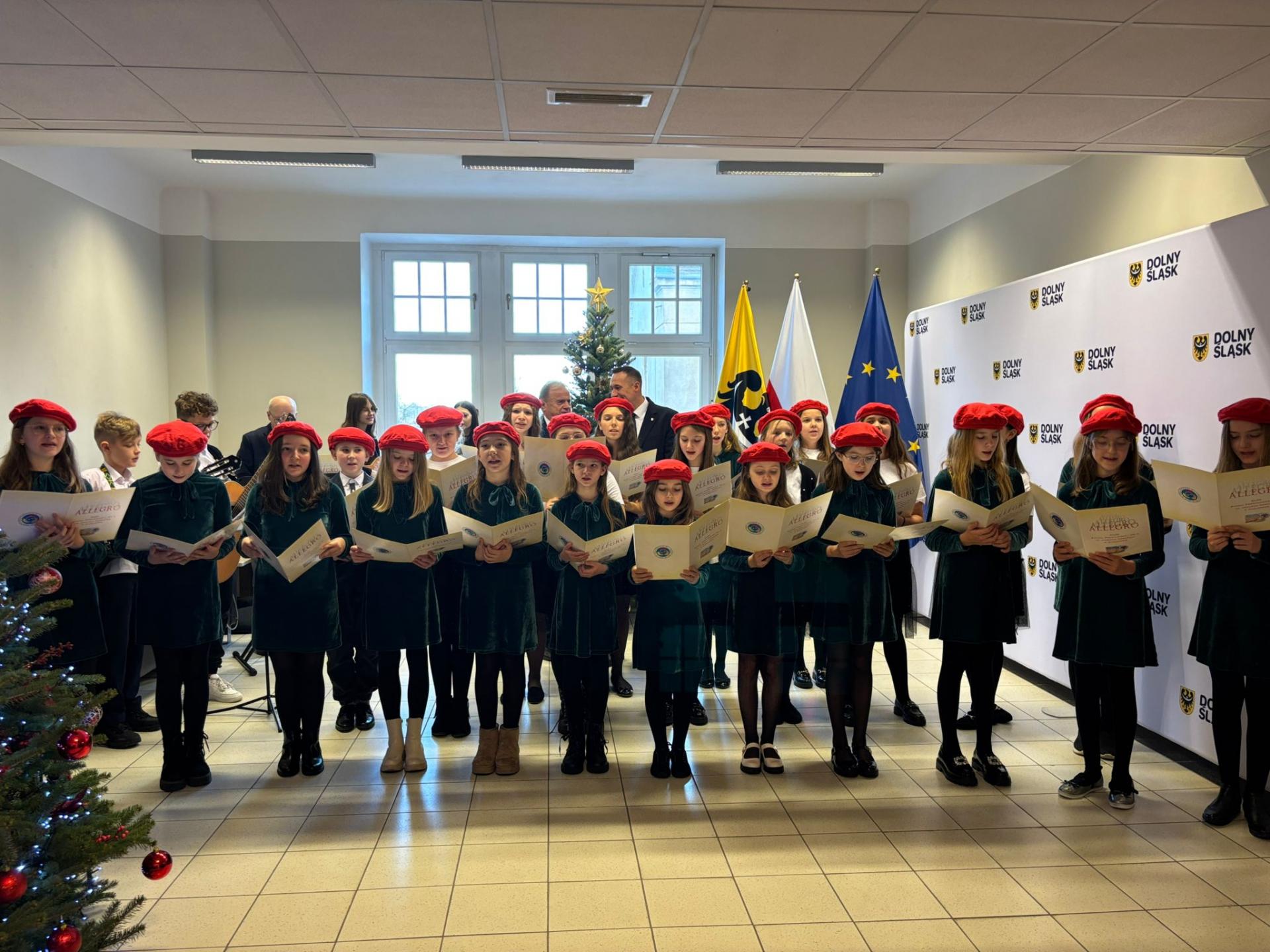 W tym roku, podobnie jak w poprzednich, chór rozkołysał urzędowe korytarze pastorałką „Karawana” – utworem, który stał się ich nieformalnym muzycznym znakiem rozpoznawczym. „Ta piosenka zawsze nas porusza. Dzieci mają w sobie tyle światła, że udziela się ono wszystkim dookoła” – mówili pracownicy Kuratorium, uśmiechając się od ucha do ucha. A dzieci? One śpiewają, bo… po prostu to kochają. Burmistrz Jan Serkies w imieniu całej społeczności Chojnowa przekazał przedstawicielom województwa bożonarodzeniowe życzenia i podziękowania za mijający rok 2025. Włodarze Dolnego Śląska – Marszałek Paweł Gancarz, Wicemarszałek Michał Rado, Wojewoda Anna Żabska, Dolnośląska Kurator Oświaty Ewa Skrzywanek, Wicekurator Dariusz Wójcik oraz pracownicy Wydziału Spraw Społecznych – nie kryli wzruszenia i sympatii dla młodych artystów z Chojnowa. Wspólne kolędowanie wprowadziło wszystkich w prawdziwie świąteczny nastrój – ten, który nie przychodzi wraz z pierwszą gwiazdką, lecz rodzi się tam, gdzie ludzie spotykają się z dobrym słowem, muzyką i otwartym sercem.