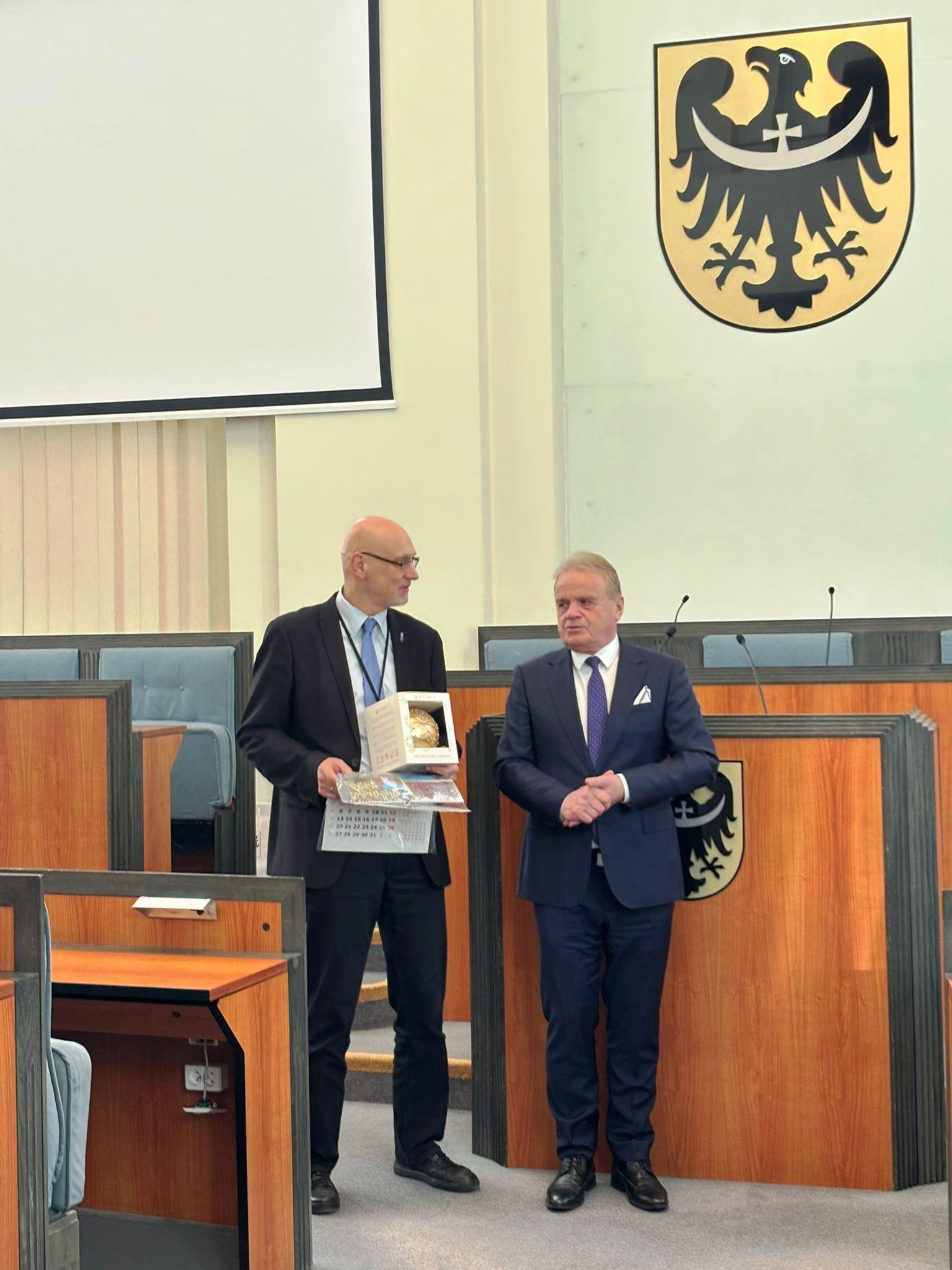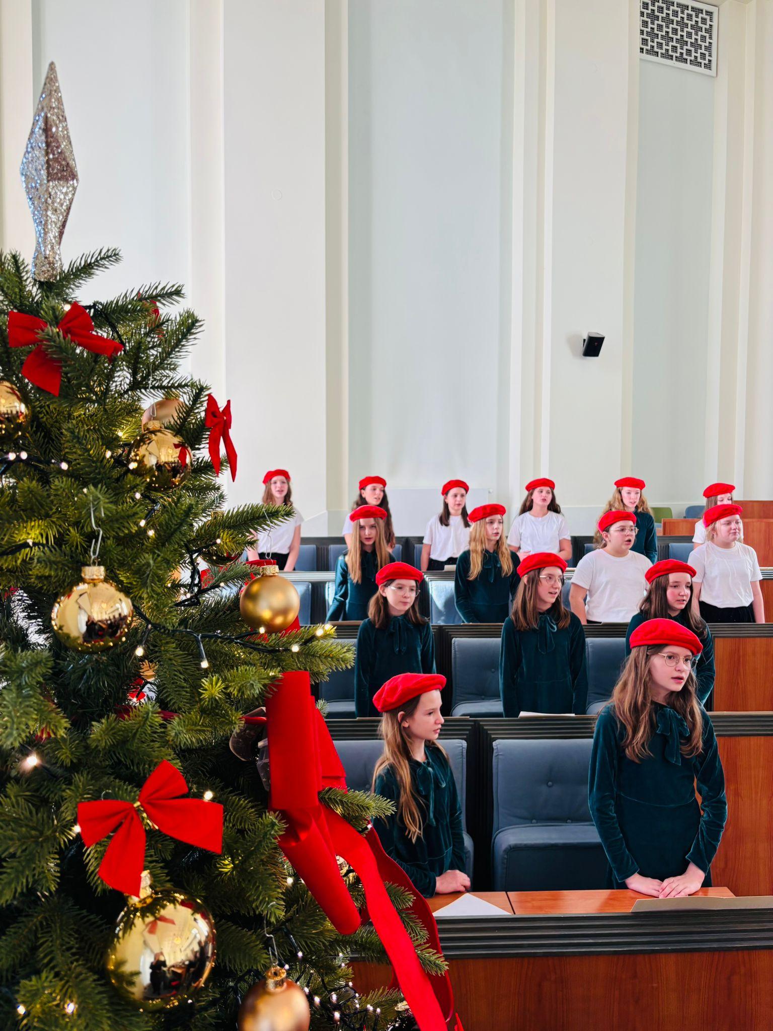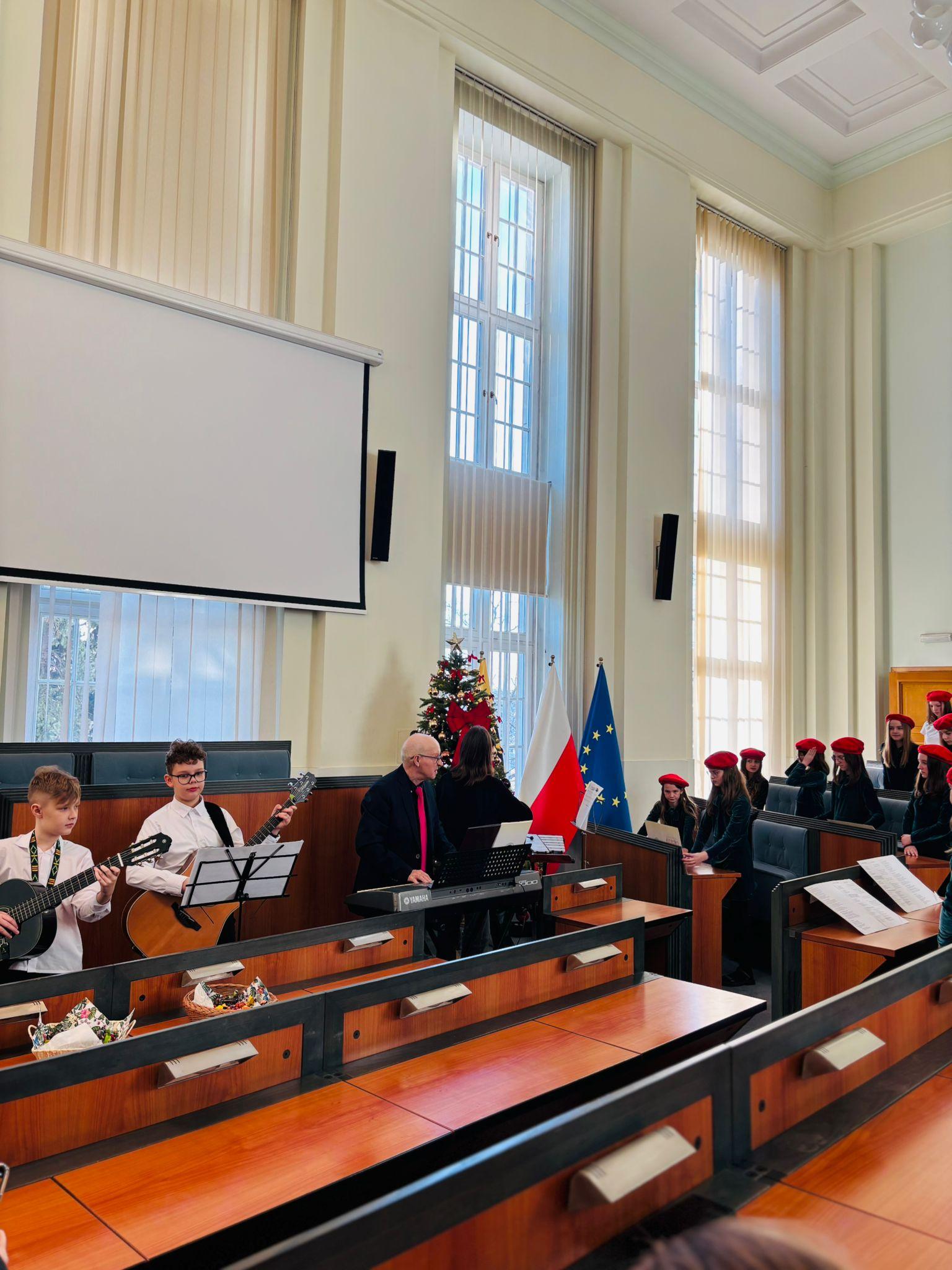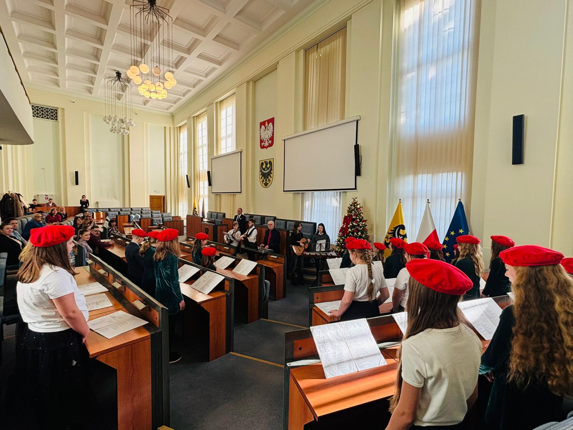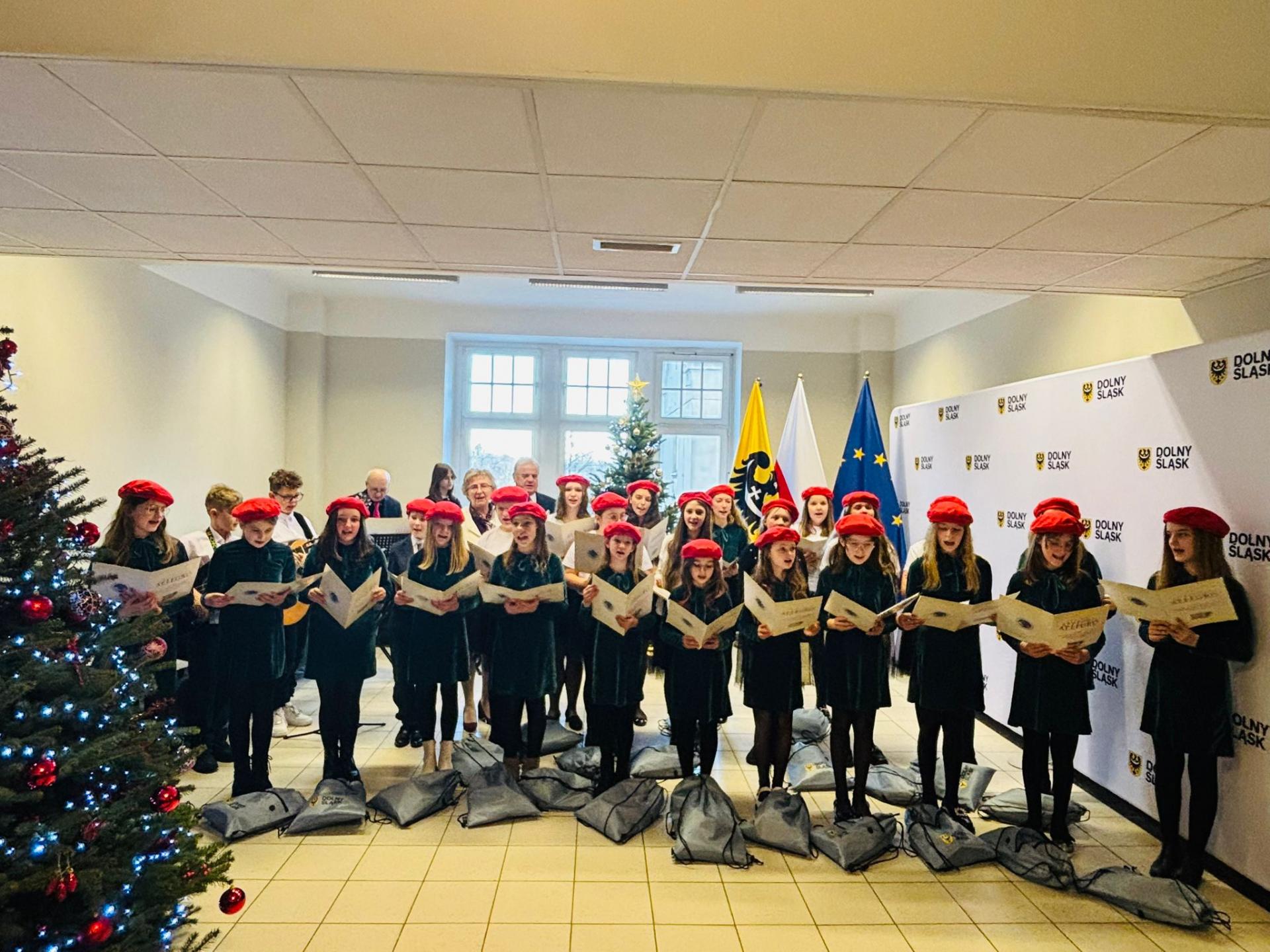 W tym roku, podobnie jak w poprzednich, chór rozkołysał urzędowe korytarze pastorałką „Karawana” – utworem, który stał się ich nieformalnym muzycznym znakiem rozpoznawczym. „Ta piosenka zawsze nas porusza. Dzieci mają w sobie tyle światła, że udziela się ono wszystkim dookoła” – mówili pracownicy Kuratorium, uśmiechając się od ucha do ucha. A dzieci? One śpiewają, bo… po prostu to kochają. Burmistrz Jan Serkies w imieniu całej społeczności Chojnowa przekazał przedstawicielom województwa bożonarodzeniowe życzenia i podziękowania za mijający rok 2025. Włodarze Dolnego Śląska – Marszałek Paweł Gancarz, Wicemarszałek Michał Rado, Wojewoda Anna Żabska, Dolnośląska Kurator Oświaty Ewa Skrzywanek, Wicekurator Dariusz Wójcik oraz pracownicy Wydziału Spraw Społecznych – nie kryli wzruszenia i sympatii dla młodych artystów z Chojnowa. Wspólne kolędowanie wprowadziło wszystkich w prawdziwie świąteczny nastrój – ten, który nie przychodzi wraz z pierwszą gwiazdką, lecz rodzi się tam, gdzie ludzie spotykają się z dobrym słowem, muzyką i otwartym sercem.