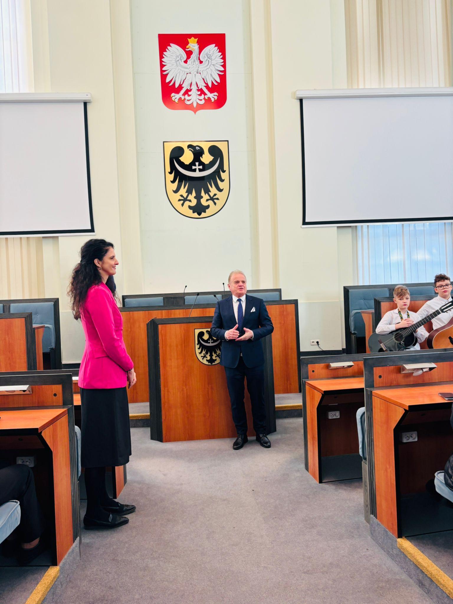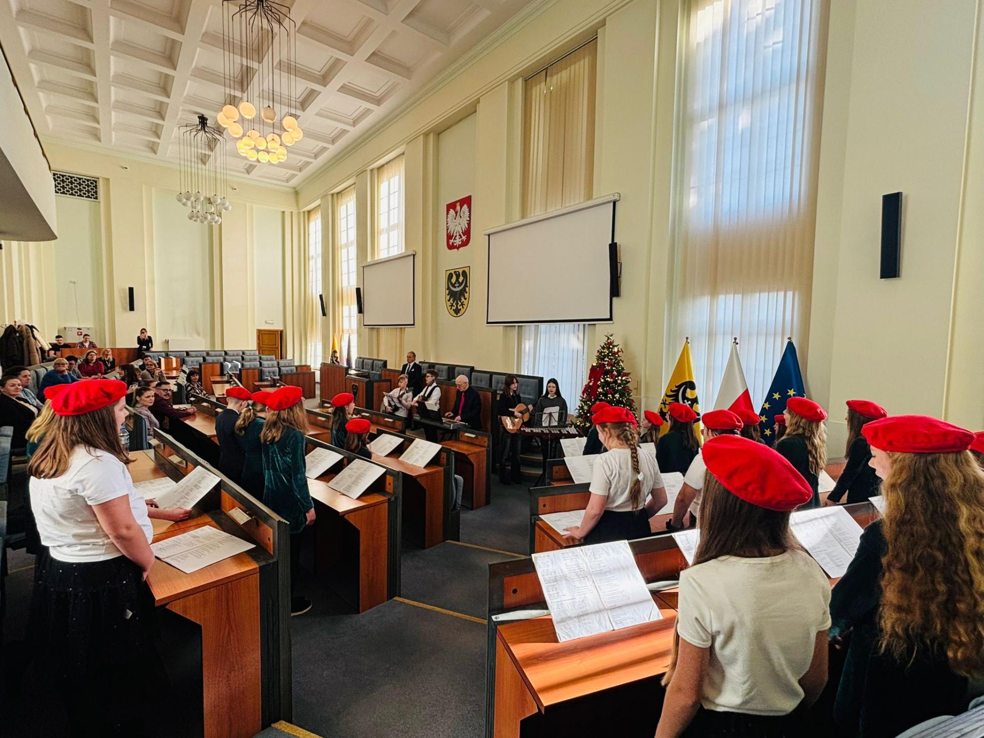 Kolęda z Chojnowa ponownie niosła się echem we Wrocławiu – i jak co roku wniosła ze sobą coś, czego nie da się zmierzyć ani policzyć: ciepło, wzruszenie i dziecięcą radość, która potrafi rozświetlić nawet najbardziej zabiegany przedświąteczny dzień. 12 grudnia zespół Allegro ze Szkoły Podstawowej nr 4, prowadzony od lat z pasją przez Zenona Chmielewskiego, wyruszył do stolicy Dolnego Śląska wraz z Burmistrzem Janem Serkiesem. Ich wizyta objęła Urząd Marszałkowski, Urząd Wojewódzki oraz Kuratorium Oświaty – miejsca, które od lat z radością otwierają drzwi dla chojnowskich kolędników. Bo Allegro to nie tylko chór. To wizytówka miasta, tradycja i zastrzyk pozytywnej energii, na którą urzędnicy we Wrocławiu czekają z niecierpliwością.