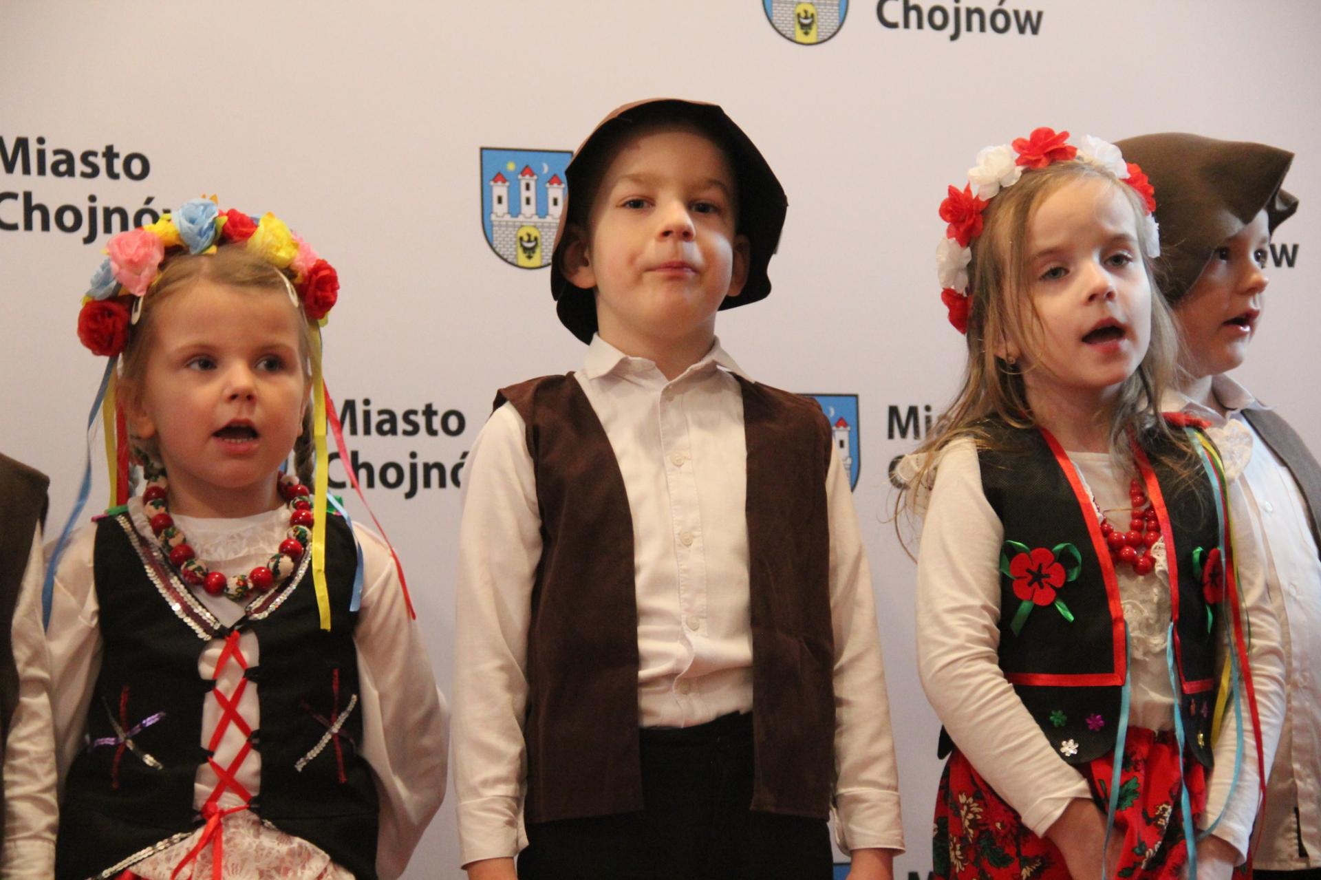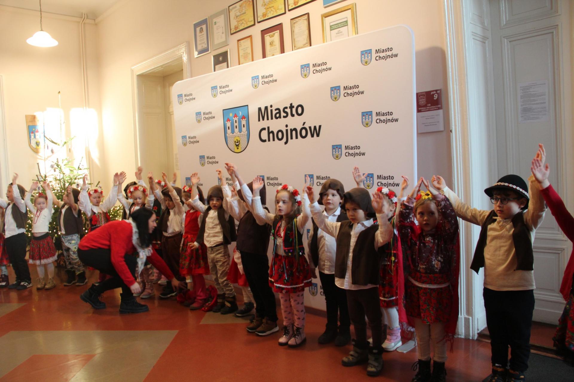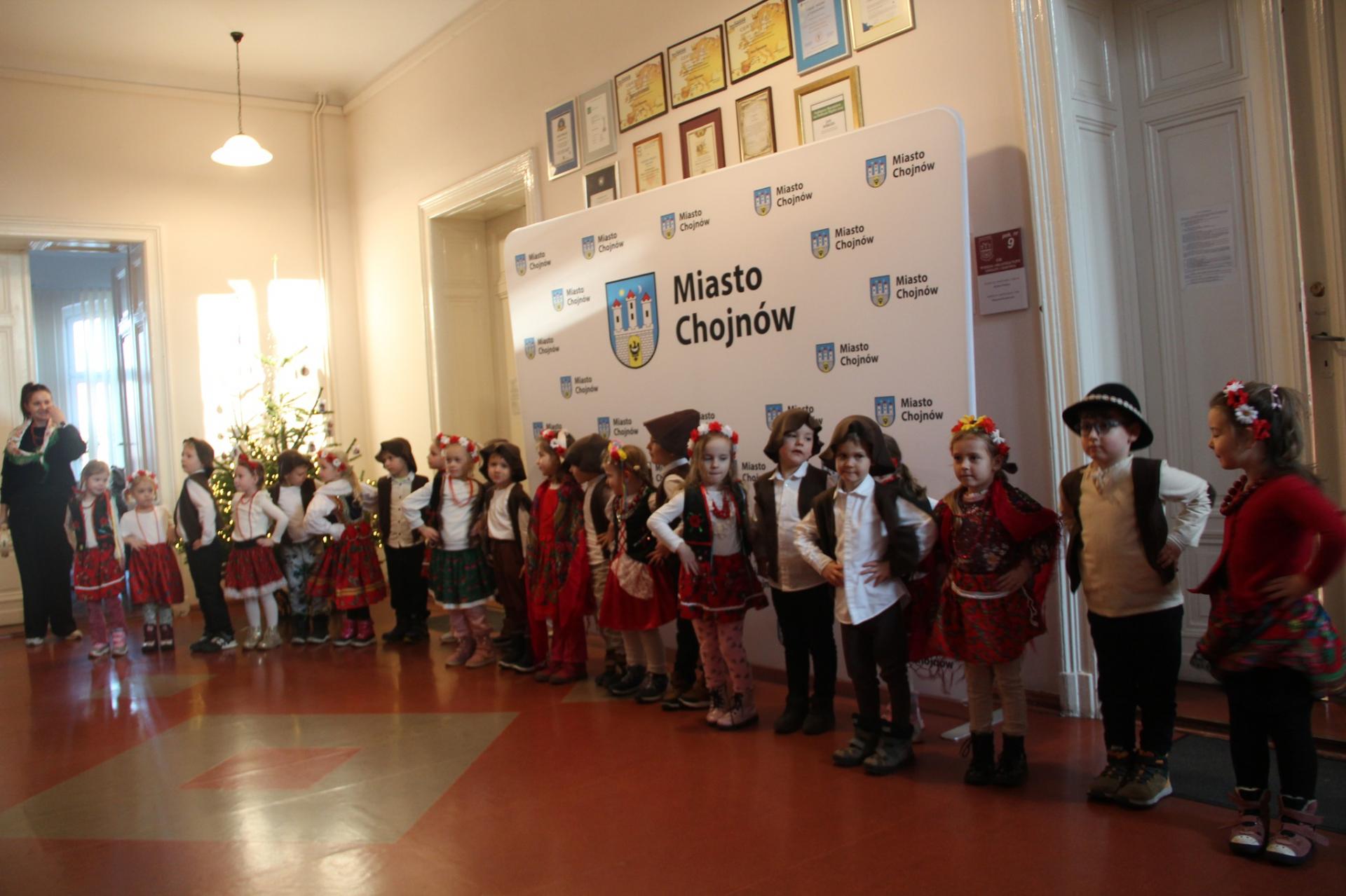 W Urzędzie Miejskim zapanowała prawdziwie świąteczna atmosfera! W murach urzędu wybrzmiały dziś pierwsze świąteczne melodie. Urocze "Krasnale" z Przedszkola nr 3 w Chojnowie wraz ze swoimi Paniami opiekunkami przyniosły władzom i pracownikom Urzędu tradycyjne życzenia.