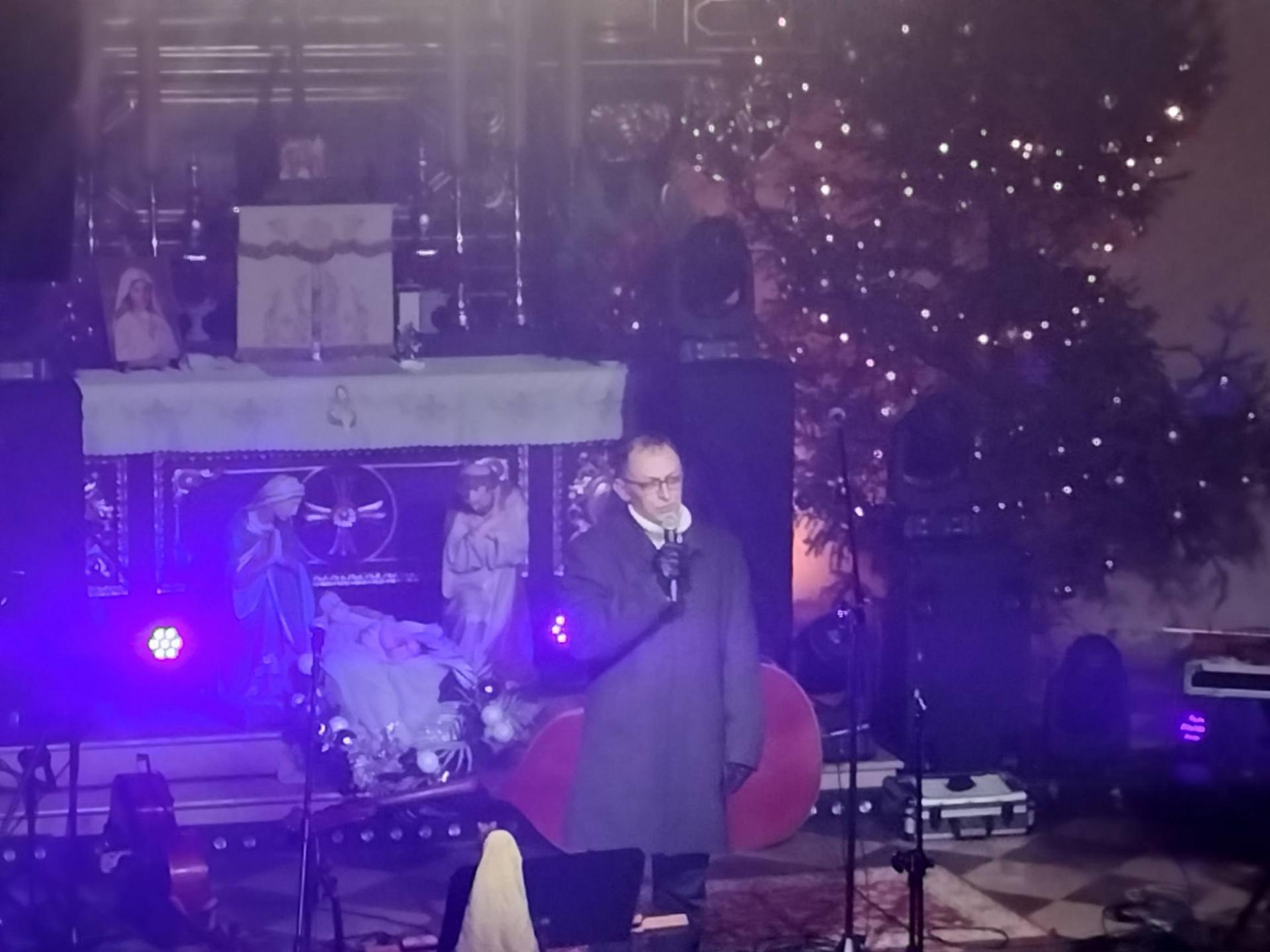 Gwiazdą wieczoru była kapela „Staszek z gór” - grupa muzyków, którzy w swoim DNA mają zapisaną miłość do Podhala i tamtejszego folkloru. Kapela, znana z autentyczności i niespożytej energii, przywiozła ze sobą nie tylko tradycyjne instrumenty, ale przede wszystkim ducha gór. W ich wykonaniu kolędy i pastorałki zyskały nowy, dynamiczny blask. Usłyszeliśmy zarówno radosne, rytmiczne utwory z „przytupem”, jak i nastrojowe pieśni, które w murach naszej fary brzmiały wyjątkowo uroczyście.