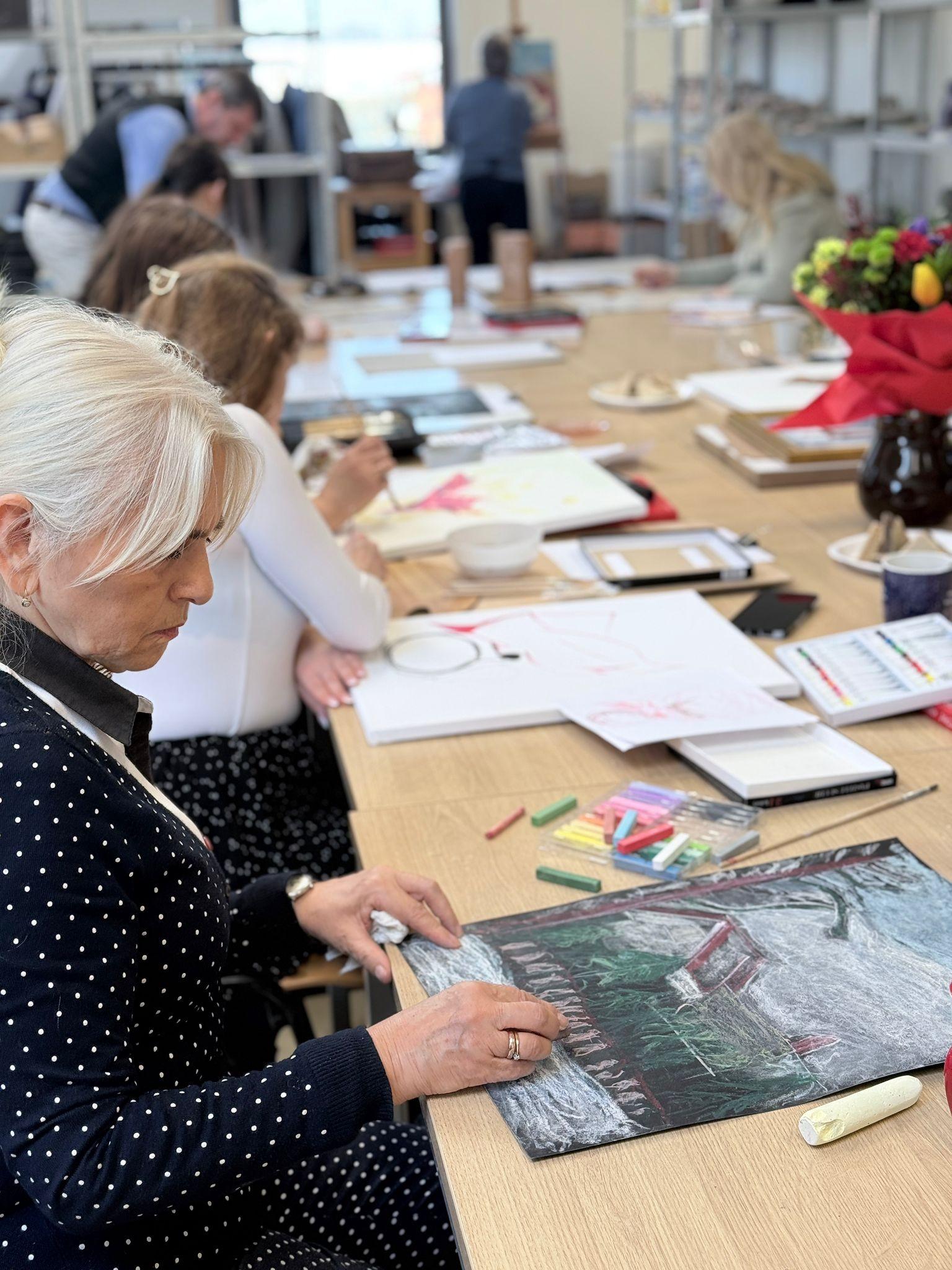 Świętowanie rozpoczęło się od zaproszenia mieszkanek do świata sztuki. W ramach cyklu warsztatów przygotowanych przez MOKSiR, panie mogły sprawdzić swoje siły w dwóch niezwykle twórczych dziedzinach: malarstwie oraz ceramice. Warsztaty malarskie stały się przestrzenią do ekspresji barw i emocji, natomiast zajęcia ceramiczne pozwoliły na bliski kontakt z materią i stworzenie unikatowych przedmiotów codziennego użytku. Praca w inspirującym gronie była nie tylko okazją do nauki nowych technik, ale przede wszystkim czasem relaksu i budowania więzi.